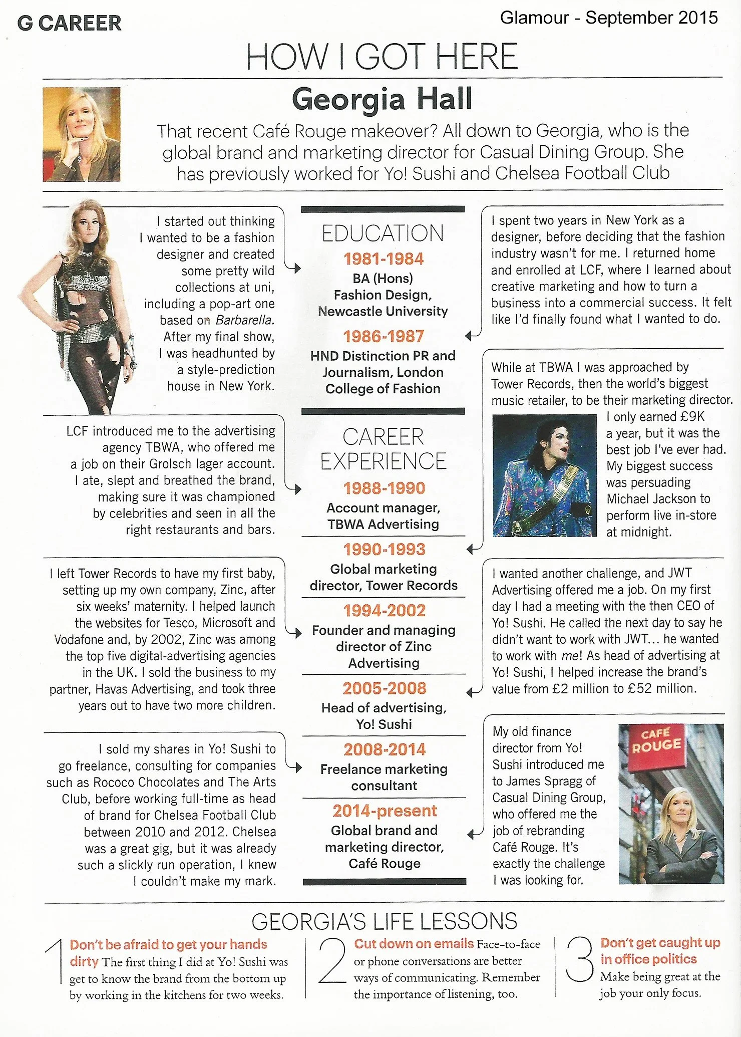 That recent Café Rouge makeover? All down to Georgia, who is the global brand and marketing director for Casual Dining Group. She has previously worked for YO! Sushi and Chelsea Football Club.